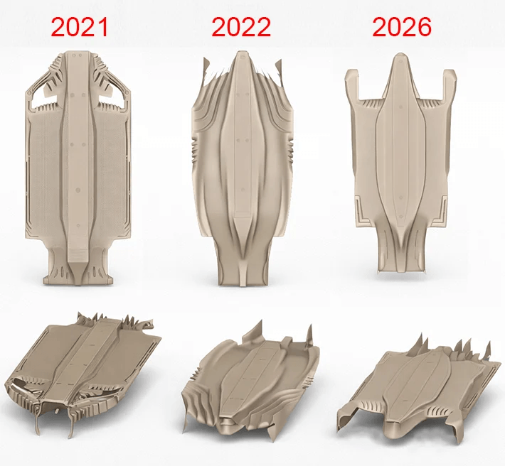Sur le plan aérodynamique, le règlement poursuit une logique déjà amorcée : réduire l’appui global afin de limiter les perturbations aérodynamiques et d’améliorer la qualité des dépassements. Cette diminution de l’appui global est au cœur d’un nouveau concept aérodynamique puisque le DRS disparait à partir de cette saison 2026. Il est remplacé par des ailes avant et arrière mobiles. Cette évolution permet de réduire la traînée dans la ligne droite et permet de générer de l’appui dans les virages.